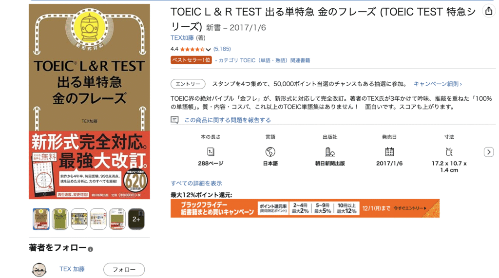 英語学習を始めたばかりの人ほど、まず銀のフレーズで基礎単語を覚えておくと、600点までの伸びが早くなりますよ。
